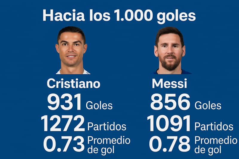 Cristiano Ronaldo y Lionel Messi siguen agrandando sus leyendas en el fútbol profesional. Ambos se acercan a la marca de los 1.000 goles, un hito jamás alcanzado en la era moderna. Actualmente, el portugués lidera la carrera con 931 goles en 1.272 partidos, mientras el argentino suma 856 en 1.091 encuentros.
