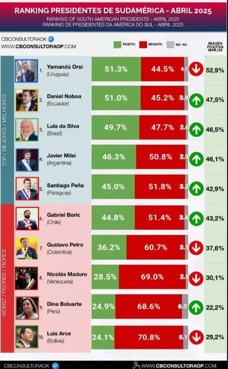 Aunque Peña se mantiene por encima de mandatarios como Gustavo Petro (Colombia, 36.2%) o Nicolás Maduro (Venezuela, 28.5%), su trayectoria muestra signos alarmantes. Mientras Daniel Noboa en Ecuador logra un crecimiento positivo de 3.5% en su imagen, el presidente paraguayo experimenta una caída sostenida que sugiere dificultades para capitalizar logros tangibles o comunicar efectivamente sus políticas públicas a la ciudadanía.
