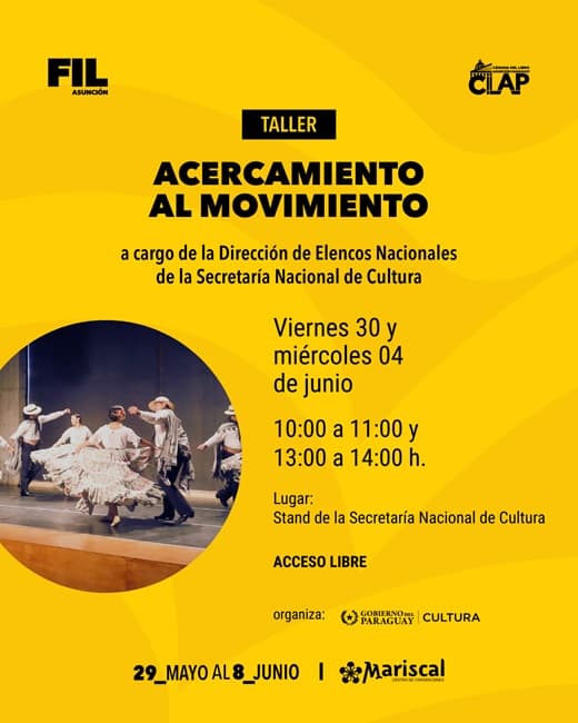 - 13:00 a 14:00 – Acercamiento al movimiento (Segunda sesión) – Stand de Cultura N° 108