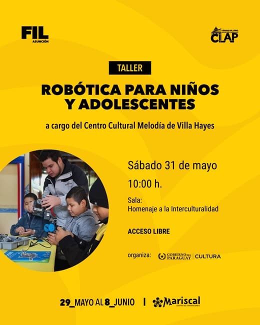 - 10:00 – Robótica para niños y adolescentes (Centro Cultural Melodía de Villa Hayes) – Sala Homenaje a la Interculturalidad
