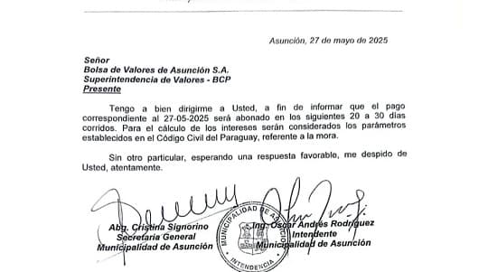 Según la propia Municipalidad, se ha incumplido el pago de intereses vencidos a fines de mayo, lo que fue comunicado oficialmente a la Bolsa de Valores de Asunción y al Banco Central del Paraguay. Los contribuyentes de la capital deberán enfrentar el pago de G. 857.122 millones solo por intereses, y G. 817.500 millones por capital, sumando un total de más de G. 1,6 billones por bonos emitidos.