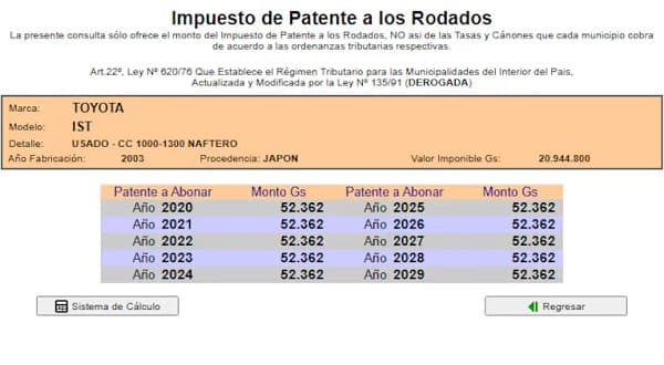 El proceso de consulta es totalmente digital y puede realizarse desde el sitio oficial de Opaci: https://www.opaci.org.py/sistemas/patentes/web_patente_rodados_620.php.
