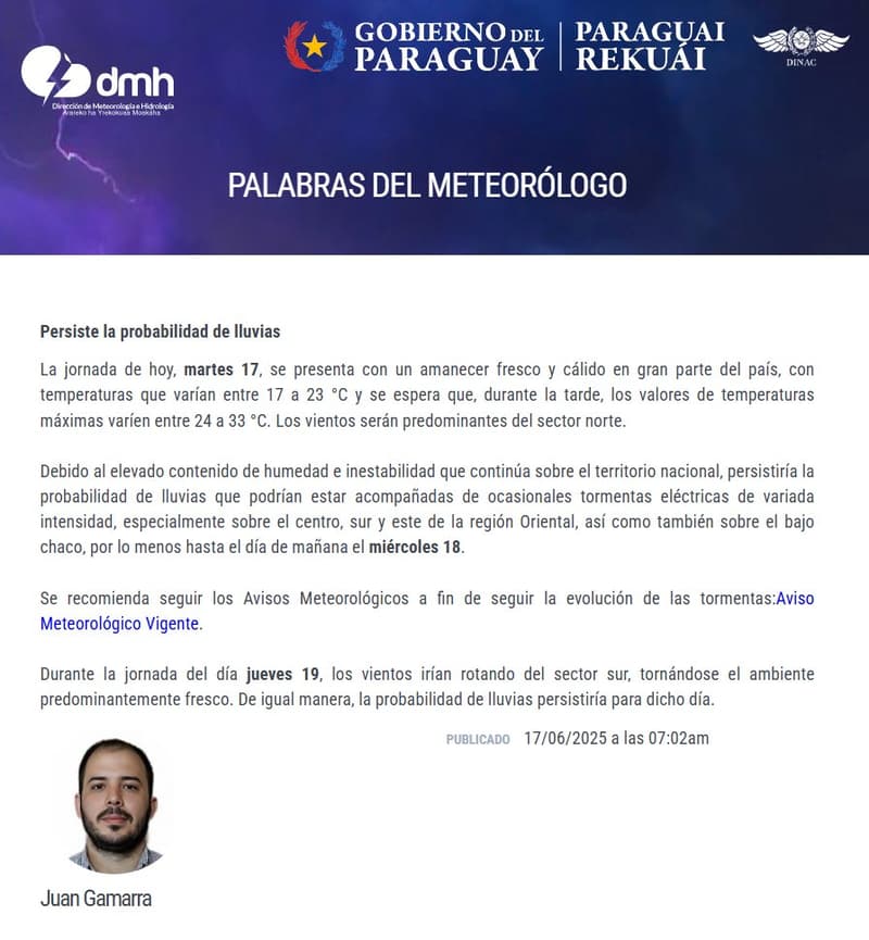 En paralelo al clima sofocante, Meteorología emitió una alerta por tormentas para el sur de la Región Oriental. Los departamentos afectados son el centro y oeste de Itapúa, Misiones y el este de Ñeembucú, donde ya se desarrollan núcleos de tormentas que podrían intensificarse durante la mañana.