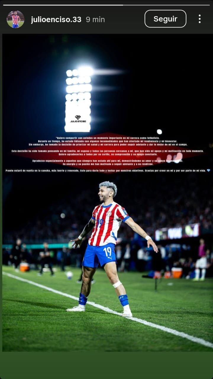 Enciso, considerado una de las mayores promesas del fútbol paraguayo, se mostró optimista y confiado en su regreso. “Pronto estaré de vuelta en la cancha, más fuerte y renovado, listo para darlo todo y luchar por nuestros objetivos”, aseguró.