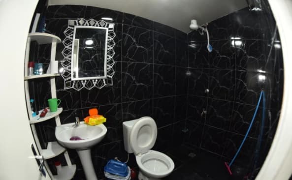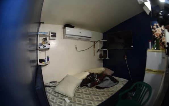 Una de las habitaciones inspeccionadas presentaba paredes pintadas de blanco inmaculado, decoración con cuadros y espejos, pisos relucientes y cortinas para mayor privacidad. La celda disponía de cama somier y baño privado completamente revestido en azulejos con instalaciones sanitarias completas y funcionales.
