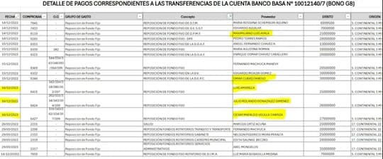 Entre los beneficiados figura Julio “Bollo” González, secretario privado de Rodríguez, quien recibió G. 26 millones dos días antes de las internas. En esa misma fecha, también fueron favorecidos Luis Amarilla, director de Desarrollo Urbano y presidente de la seccional 19, con G. 25 millones, y César Velilla Cabriza, entonces director del Cemupe y actual funcionario de Yacyretá, con G. 27 millones.