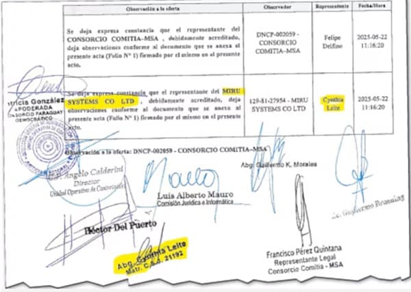 El nombre de Leite aparece en registros de la Dirección Nacional de Contrataciones Públicas (DNCP), donde figura como apoderada legal de la empresa que buscaba introducir sus equipos en el sistema electoral paraguayo. Este vínculo genera nuevas dudas sobre el proceso, considerando que Leite fue parte del equipo político-técnico que recibió información clave durante la transición de gobierno.
