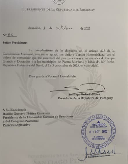 La visita se desarrollará los días 2 y 3 de octubre en Campo Grande, Dourados, Porto Murtinho y Ribas do Rio Pardo. En medio de este desplazamiento internacional, el mandatario se encuentra bajo el foco de denuncias por supuestos sobres de dinero en la residencia presidencial.