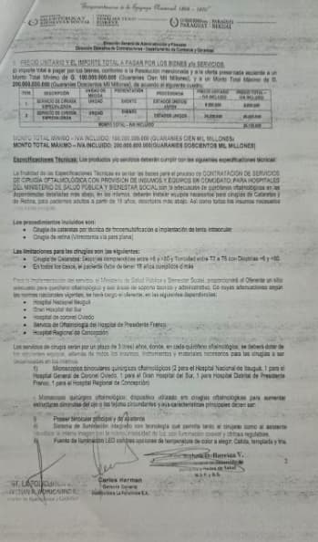 Según el contrato, cada cirugía de cataratas costará G. 9.850.000, mientras que las de retina (vitrectomía) alcanzarán los G. 26.300.000. Médicos consultados señalaron que en el sector privado los costos son de G. 7.000.000 y G. 16.500.000 respectivamente, mientras que en la Fundación Visión los valores bajan a G. 1.750.000 y G. 3.500.000, lo que representa una diferencia de hasta cinco veces más.