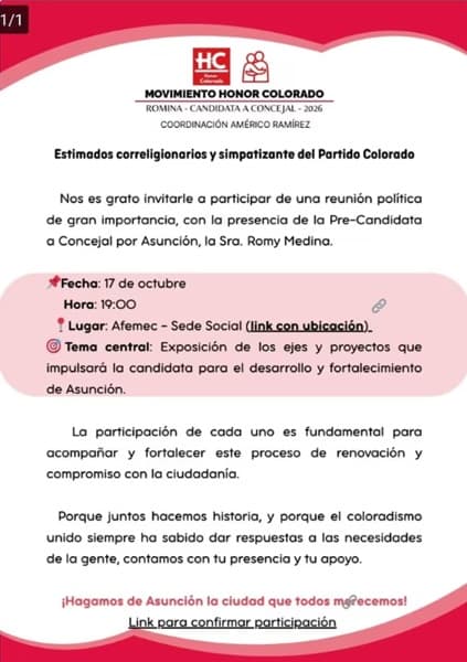 Durante el mitin, Romina Medina agradeció públicamente la presencia de funcionarios, directores y docentes del MEC, destacando el apoyo brindado para su precandidatura. Su mensaje fue replicado en redes institucionales por algunos asistentes, lo que amplificó las críticas.