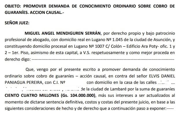 Los documentos, filtrados en los últimos días, señalan que las deudas del concejal ascienden desde montos menores de G. 1.500.000 hasta cifras superiores a G. 104.000.000. Los reclamos formales fueron presentados por distintas firmas que ahora intentan cobrar judicialmente los compromisos pendientes.