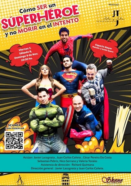 El viernes 7 de noviembre estrena “Cómo ser un superhéroe y no morir en el intento”, un café concert explosivo donde cinco hombres confiesan con copa en mano todo lo que las mujeres siempre quisieron saber. La obra presenta al Hulk con deudas, Superman sin aire, Thor con martillo flojo, Hombre Araña estrellado y al Capitán Sudamérica en situaciones delirantes.