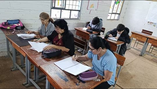 Doña Alejandrina asiste al Centro de Educación de Jóvenes y Adultos N° 11-303. Esta institución pública en Itá ofrece educación permanente. Es una oportunidad para quienes, por diversas razones, abandonaron la escuela.