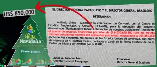 La tercera edición de la Villa Navideña de Itaipú vuelve a instalar el debate sobre el uso de los recursos de la Binacional. A pesar de que la institución aún no oficializó el costo final, se estima que el gasto rondará los USD 700.000, cifra similar a la inversión realizada el año pasado y que ya había generado fuertes cuestionamientos.