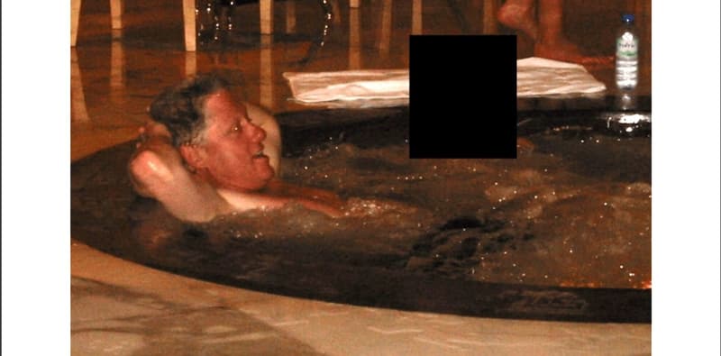 En una de las fotos más comentadas, Clinton aparece recostado dentro de un jacuzzi. Tiene los brazos detrás de la cabeza y está acompañado por otra persona. Sin embargo, el rostro de esa segunda figura fue censurado por las autoridades. La imagen se viralizó en pocas horas y generó fuertes reacciones en redes sociales y medios internacionales.