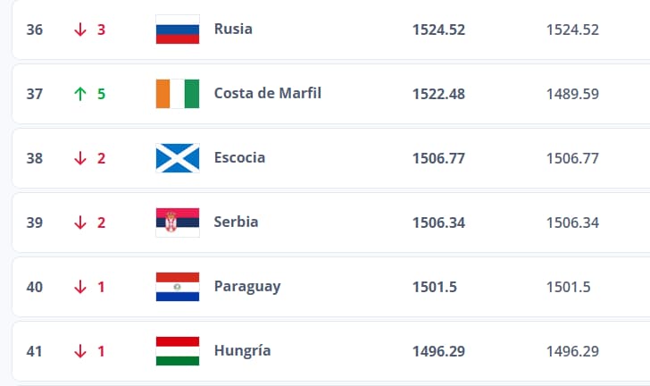 Dentro del contexto sudamericano, equipos como Colombia, Uruguay y Ecuador mantienen una posición por encima de Paraguay en el ranking, mientras que selecciones como Venezuela y Costa Rica ocupan lugares más abajo en la tabla.