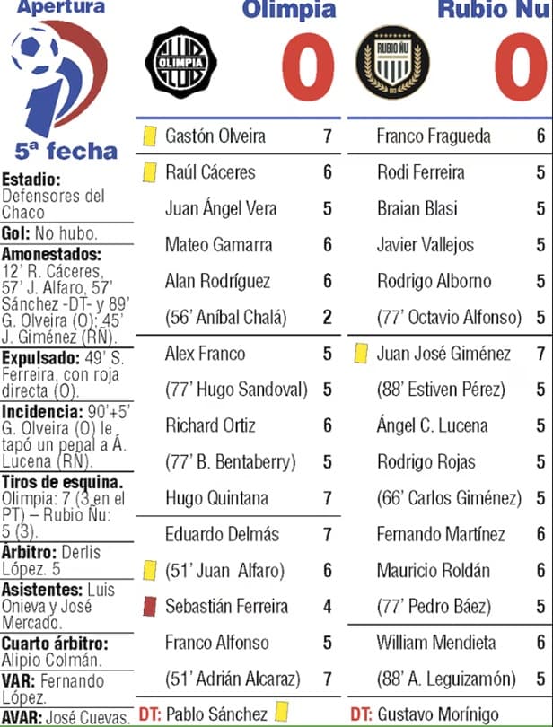 Roja, penal y VAR: Olimpia iguala con Rubio Ñu