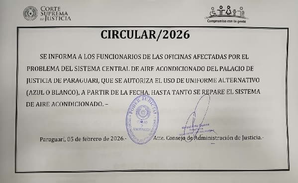 La Décima Circunscripción Judicial de Paraguarí atraviesa una crisis interna marcada por condiciones laborales que el propio funcionariado califica de insostenibles. Decenas de trabajadores denuncian que, con el calor extremo, cumplir la jornada se volvió “inhumano”: en varias oficinas no funcionan los sistemas de refrigeración por falta de mantenimiento y reparaciones urgentes, y el personal trabaja con temperaturas que llegan a rozar los 40 °C.