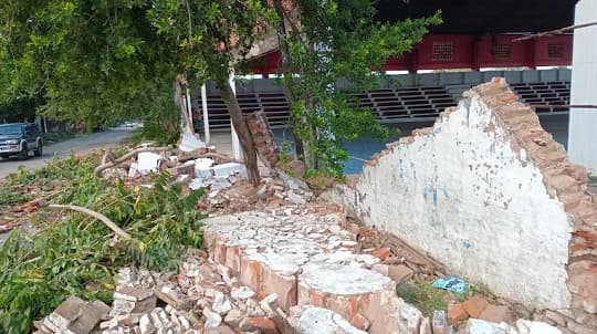 Una muralla perimetral del polideportivo del Club Coronel Escurra también se vino abajo, esta vez sobre las calles 24 Proyectadas y Tacuary.