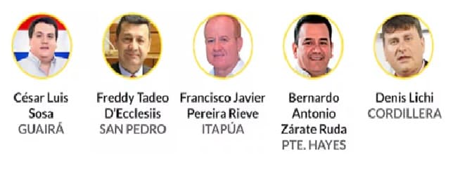 En segundo lugar aparece Freddy Tadeo D’Ecclesiis, de la ANR y gobernador de San Pedro, con un patrimonio declarado de G. 23.637.010.420. Su declaración se concentra sobre todo en cinco inmuebles ubicados en San Estanislao: una granja, tres viviendas y un terreno baldío. Además, consignó dos vehículos. En tercer lugar figura Francisco Javier Pereira Rieve, del PLRA y gobernador de Itapúa, con G. 6.672.000.000. En su caso, el principal activo declarado también corresponde a inmuebles, con 15 viviendas ubicadas casi en su totalidad en Cambyretá y Encarnación.