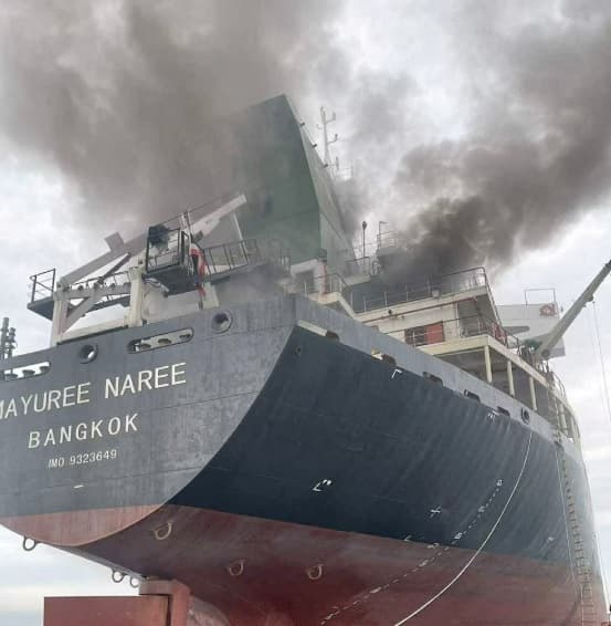 El buque, identificado como Mayuree Naree, había salido de un puerto de los Emiratos Árabes Unidos cuando ocurrió el ataque. Imágenes difundidas por la Armada muestran una densa columna de humo negro elevándose desde la popa del barco. También se observan balsas salvavidas flotando alrededor de la embarcación.