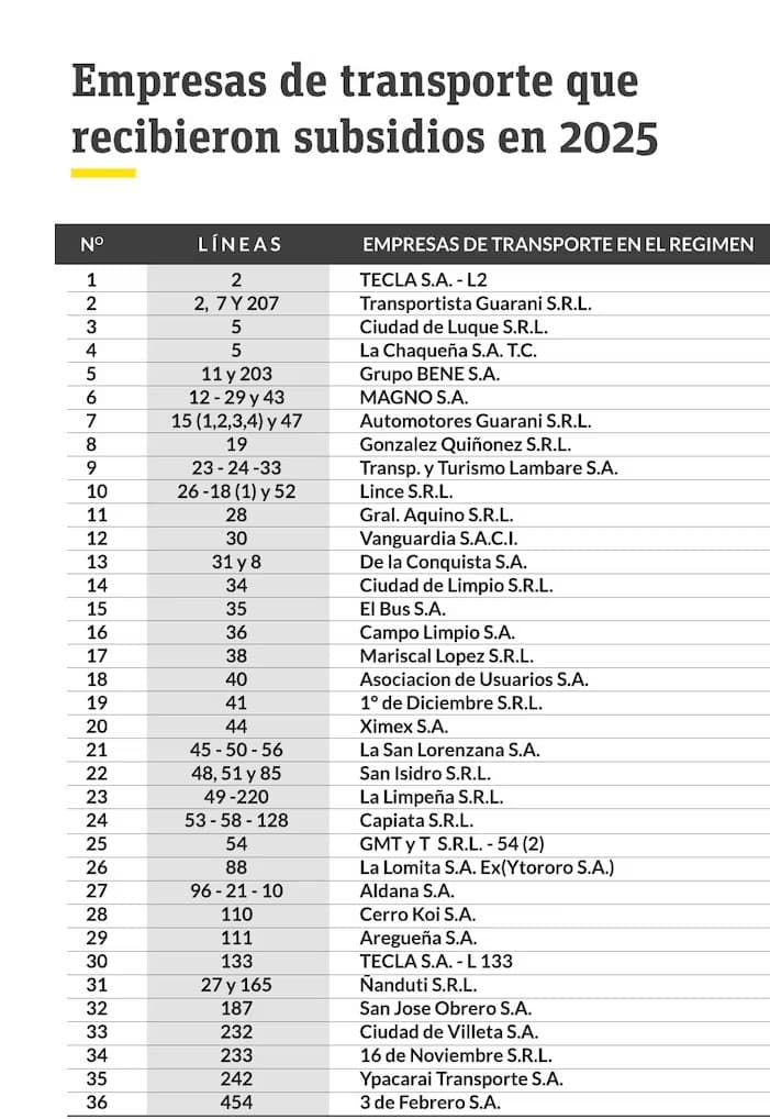 Hoy se siguen utilizando datos del segundo semestre de 2024. En ese periodo, la tarifa promedio fue de G. 4.470 para buses convencionales. Para buses con aire acondicionado, el valor alcanzó G. 5.834.