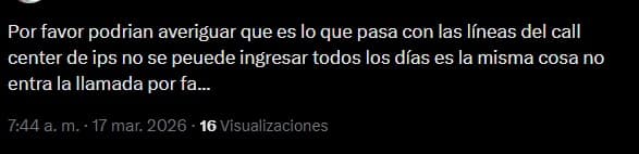 En redes sociales también se multiplican los reclamos. Una usuaria expresó: “Por favor podrían averiguar qué es lo que pasa con las líneas del call center de IPS, no se puede ingresar, todos los días es la misma cosa, no entra la llamada, por fa”.