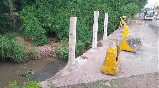 En el lugar se instalaron postes de hormigón como parte de una intervención, pero la obra no fue finalizada. Actualmente, solo quedan restos de un antiguo barandal de hierro, lo que refleja un estado de abandono en el mantenimiento del puente.