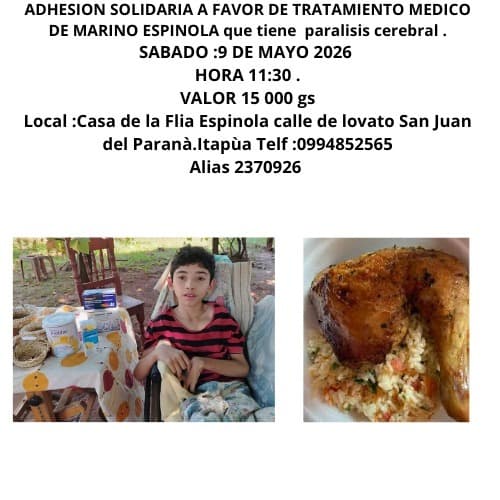 Una familia organiza una ayuda solidaria para apoyar el tratamiento de un niño con parálisis cerebral en Itapúa. Se trata de Marino Espínola, de 13 años, quien además padece epilepsia desde su nacimiento y requiere medicación constante.